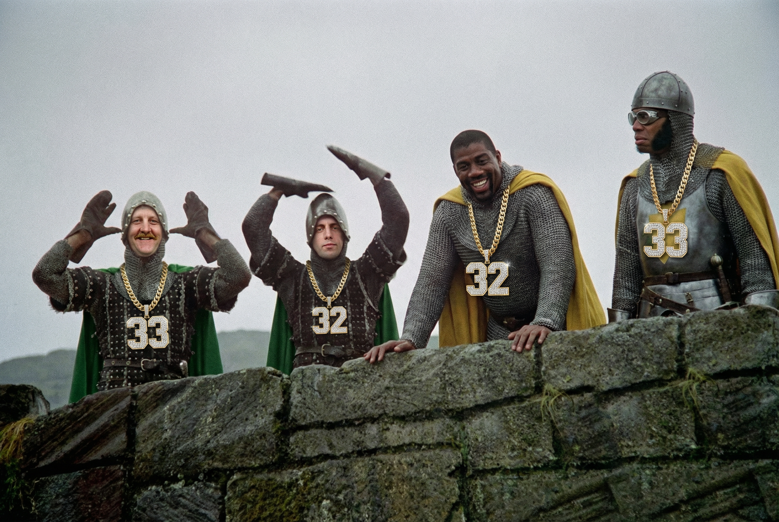 That was the cruelty of the first wall. It was not one villain. It was a whole social order. A wall with a bemused knight from French Lick atop, who upon hearing that the Bucks were requesting entry for their Quest for the Holy Title, taunted, "Holy Title? We already have one. It's very nice. Your assistant coach smells of elderberries!"