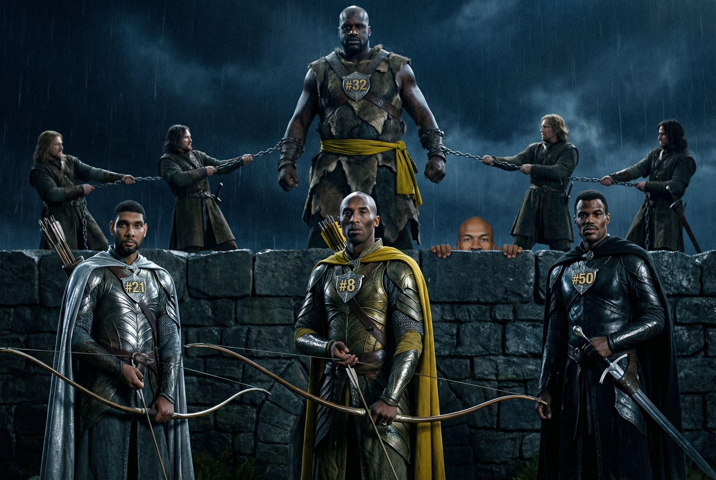 And by then it was clear: the world is changed. In the West, two great fortresses had risen: the Lakers and the Spurs. One came draped in imperial glamour. The Lakers had a Balrog named Shaq, with young Kobe stalking behind him like a Nazgûl assassin.